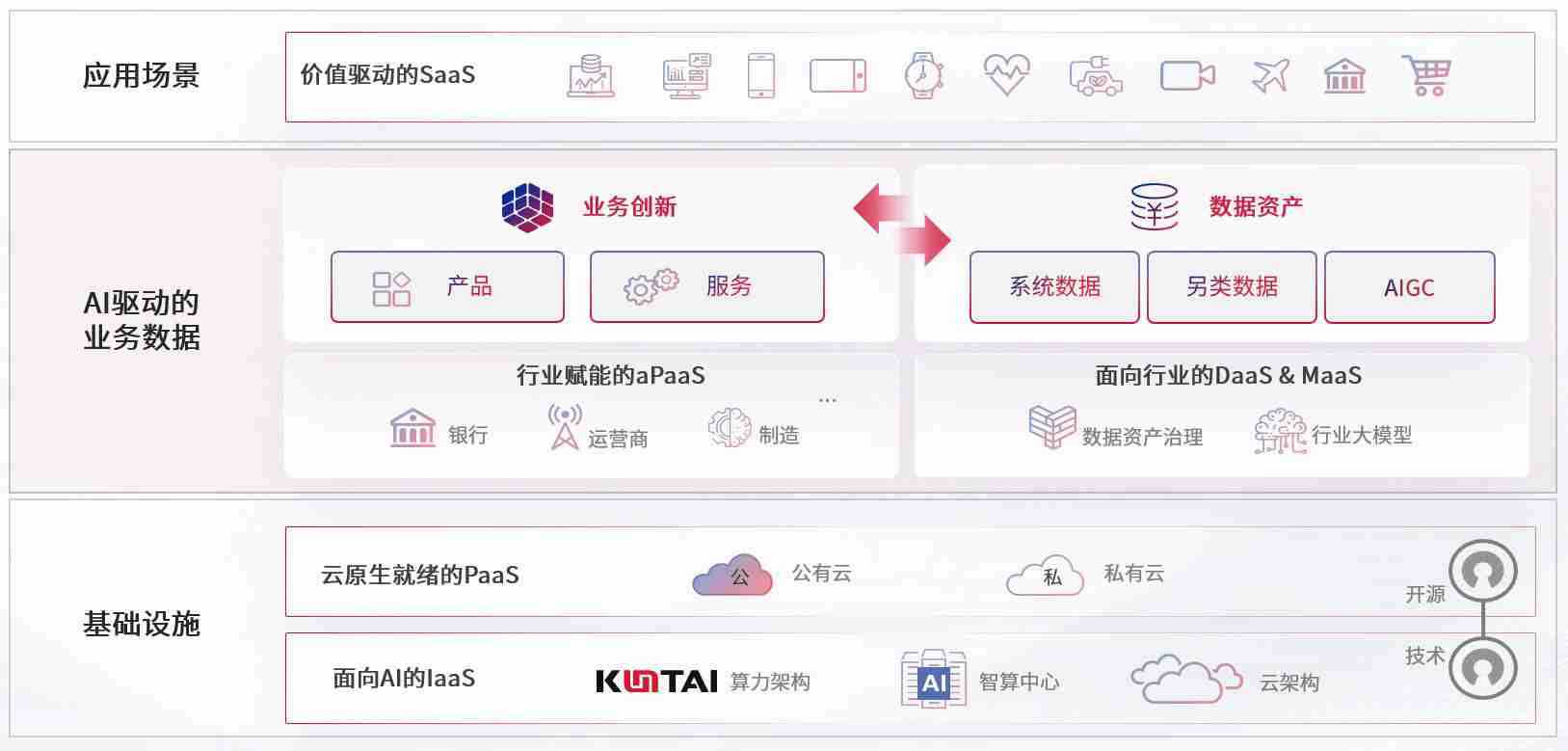 数字时代,,围绕企业数字化转型的关键要素,,,AG尊龙凯时数码开创性的提出数云融合战略和技术体系框架,,,着力在云原生、、、数字原生、、、AI原生和信创产业上架构产品和服务能力,,,,为处在不同数字化转型阶段的快消零售、、汽车、、、金融、、、医疗、、政企、、教育、、、、运营商等行业客户提供泛在的敏捷IT能力和融合的数据驱动能力,,,构建跨界融合创新的数字业务场景和新业务模式,,助力企业级客户建立面向未来的核心能力和竞争优势,,,全面推动社会的数字化、、智能化转型升级。。
